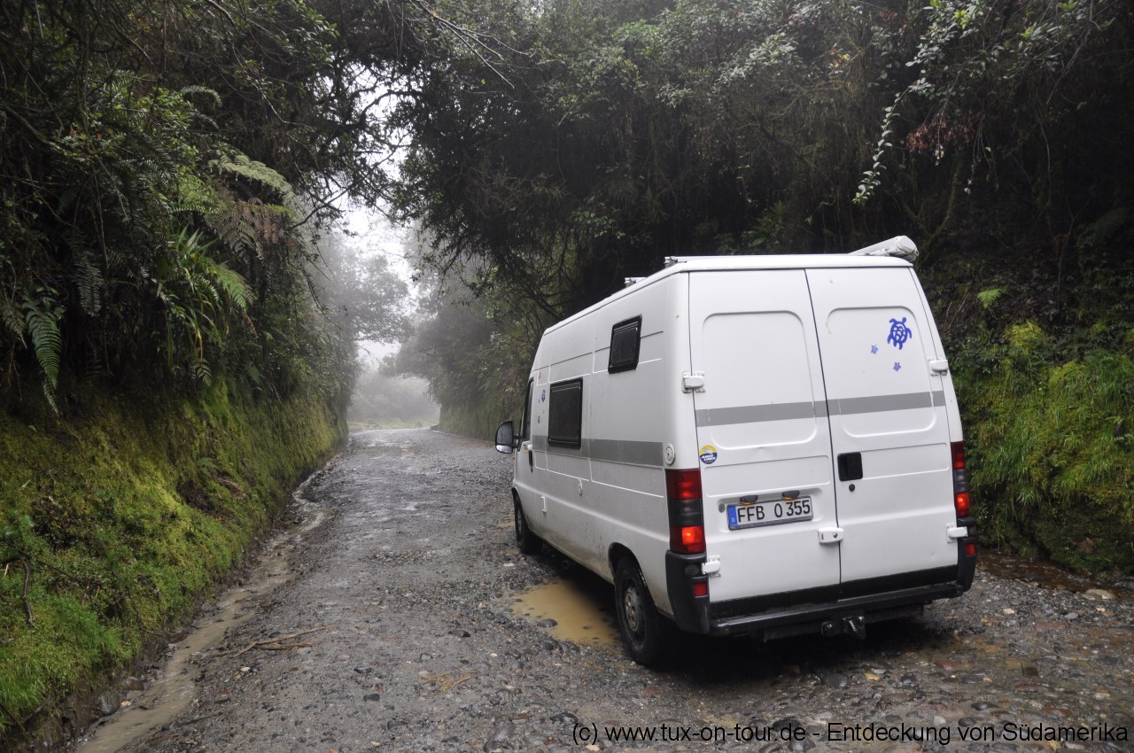 Am nächsten Morgen haben wir es geschafft und verabschieden uns von allen, was eine längere Zeit in Anspruch nimmt und so können wir fahren. Rafael und Theo fahren auch nach Popayan und da sie uns das vordere Nummernschild geklaut haben, fragen die beiden nach wie viel dies kostet und rufen uns deswegen an (wir haben eine kolumbianische Nummer). Nachdem ein Schild ca. 20 € kostet, lassen wir es und beschließen wir einfach selbst eines zu malen wenn überhaupt. Die Orginalen werden wir nicht einsetzen.
